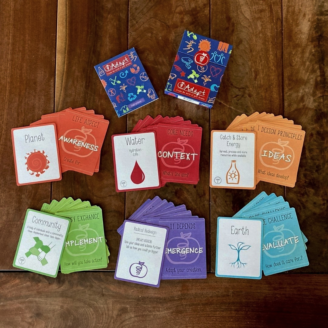 The Adapt Design Deck guides you through a creative process that fosters sustainability, regeneration, and healing. Whether you’re redesigning your garden, career, relationships, or community, Adapt helps you uncover deeper questions, take meaningful action, and navigate the complexities of real change. Since its launch in 2021, it has been embraced in over 15 countries by community workers, teachers, designers, and others committed to transformation. Find the tools and support you need—card deck, poster, courses, and sessions—to bring your vision to life.