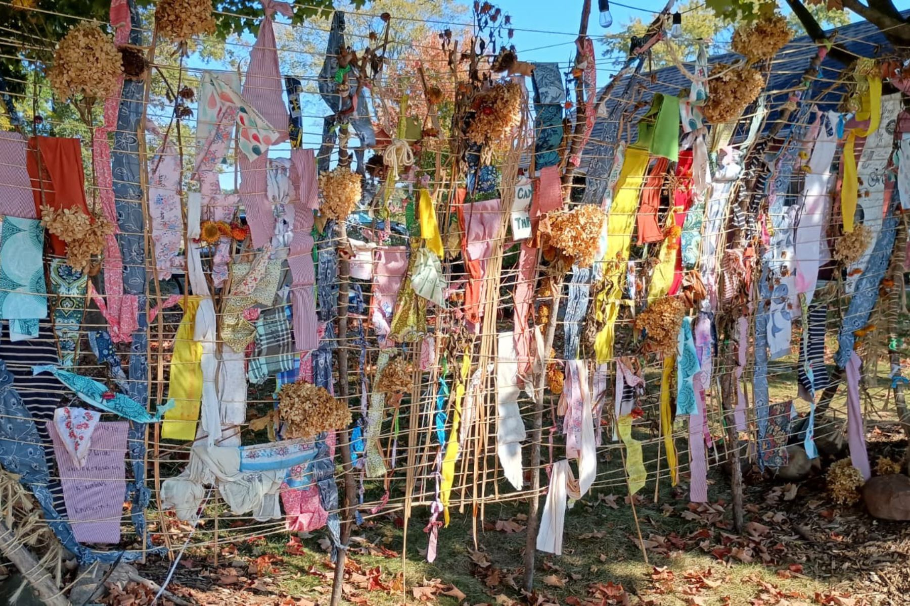 Each material carried a story—dried flowers from farm beds, fabric scraps from various projects, outgrown pajamas patterned with moons. Their beauty hadn’t faded, just changed. Even the act of offering these items felt sacred: a gentle practice of release, of honouring what once was, and transforming it into something new. Many of the materials were compostable or recyclable, reminding us that beauty and meaning are rarely permanent.