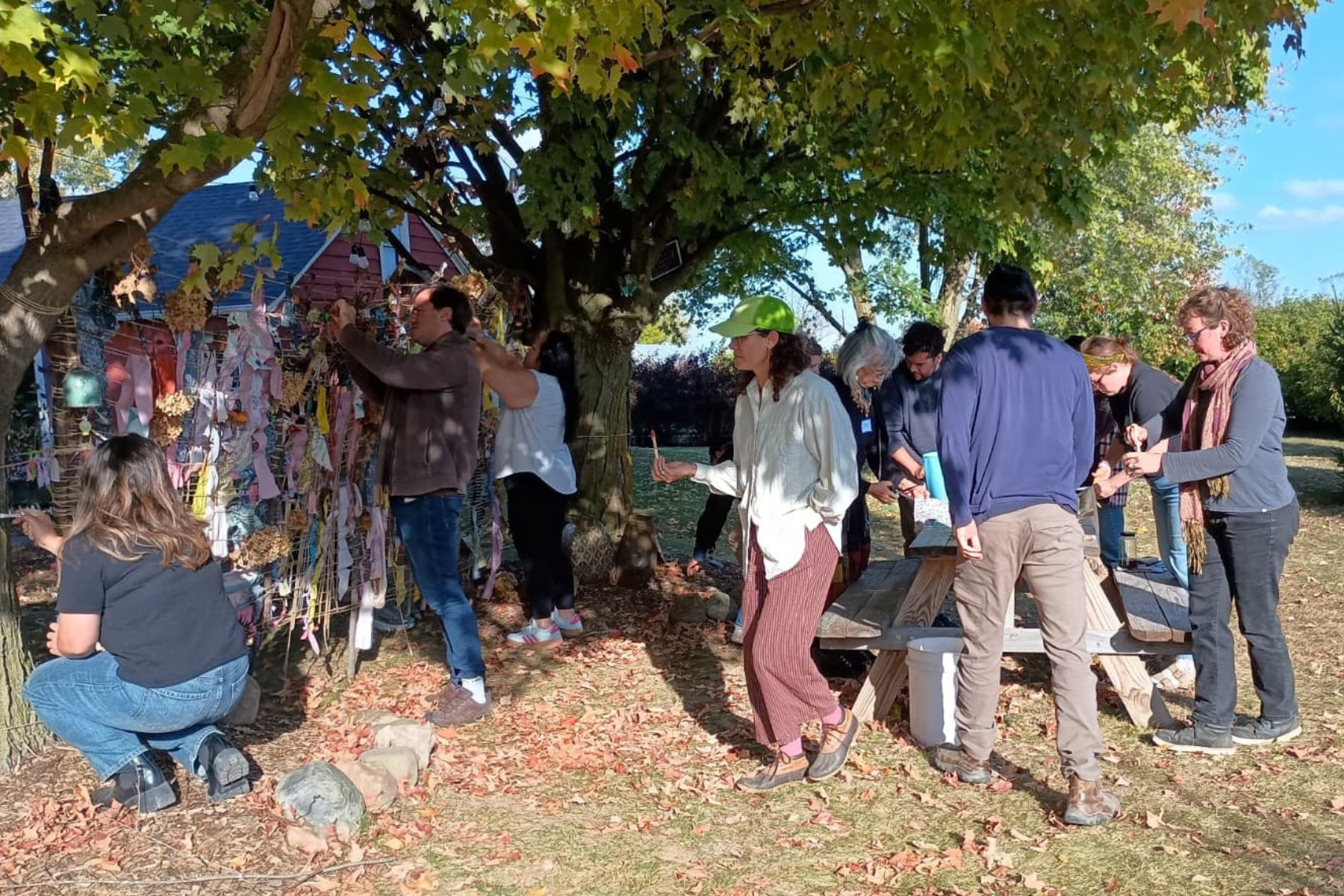 Just as the loom invited slow creation, the painting of our Elder Trees offered a moment of vibrant, impermanent joy. Using natural, biodegradable paints made from fruits and vegetables, participants adorned the trees that held the loom—echoing the themes of rootedness and release. The colors faded with time and rain, but their memory lingers, much like the intentions tied to the loom. In nature, nothing lasts forever—but everything leaves a mark. May each visitor's hopes and reflections continue to grow, guide them, and take shape, carrying them into the next season.
